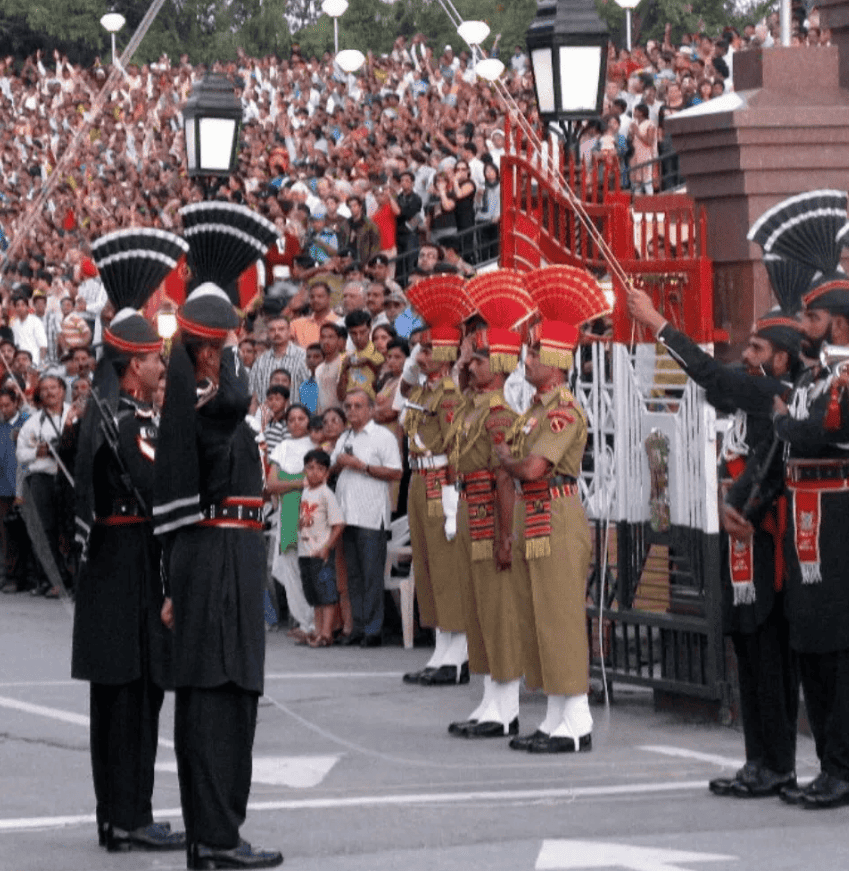 Every day at the Wagah Border in India, a remarkable event known as the National “Beating Retreat” ceremony unfolds. During this ceremony, the guards of the nation solemnly lower the flags and engage in a captivating dance performance.