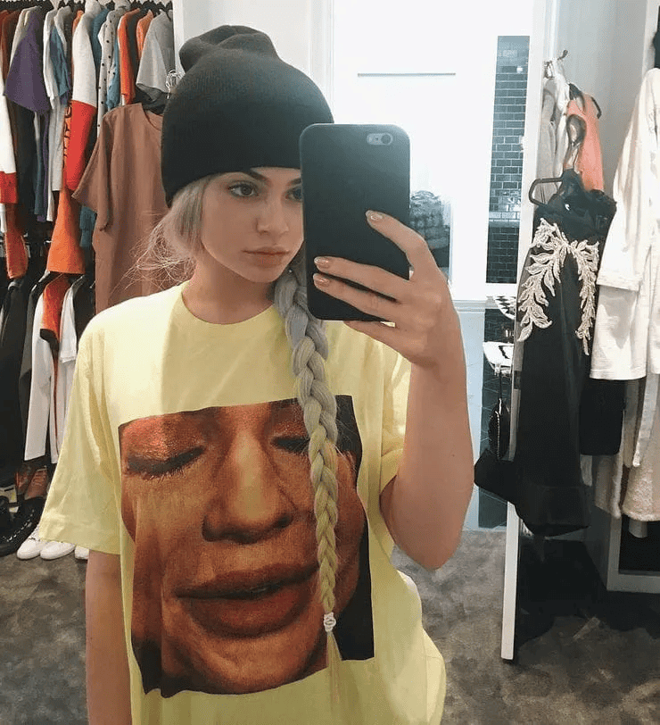 The Kardashian/Jenner clan occasionally exhibits self-appreciation that might border on narcissism. Emulating her sister Kim, Kylie decided to capture herself wearing a t-shirt embellished with her image. While self-love is undoubtedly commendable, it’s possible that wearing your face on your clothing might take it to an extreme level.