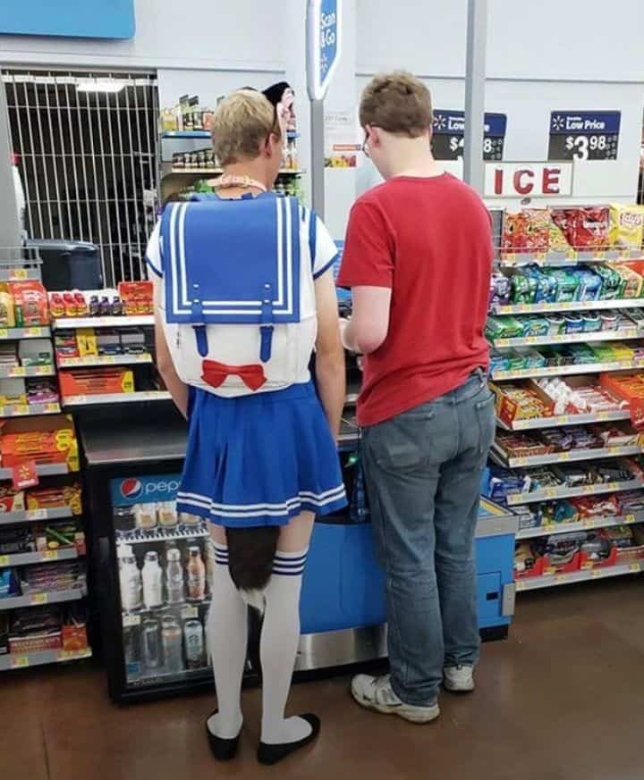 However, it’s a bit perplexing to decipher if this person is dressing up for a special occasion or just decided to embrace their unique style. While we wholeheartedly support individuality in fashion, it does make you wonder why they chose to sport a tail in public. Some things might be better suited for private enjoyment.