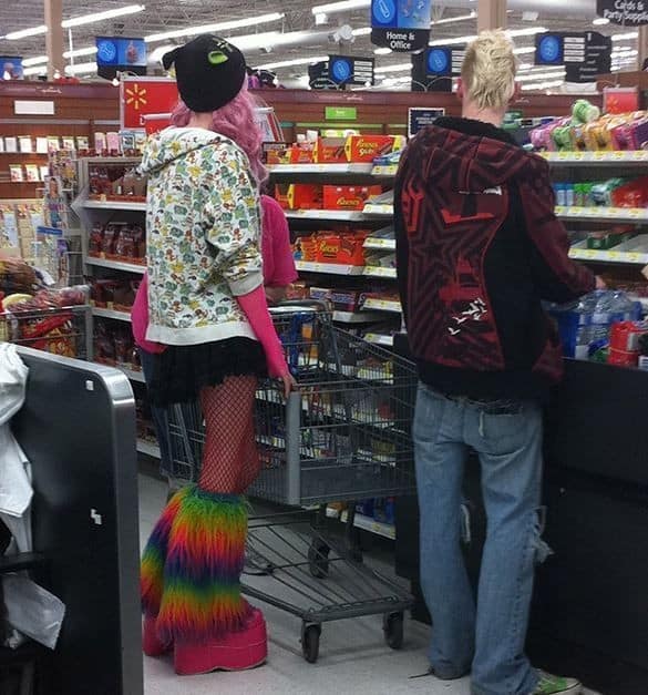 Spending time at your local supermarket and engaging in a bit of people-watching can be an entertaining way to pass the day. If you happen to come across a couple of ravers, you’re in for a visually captivating experience. These individuals are known for their vibrant and colorful style, adding a dose of excitement to your shopping trip.