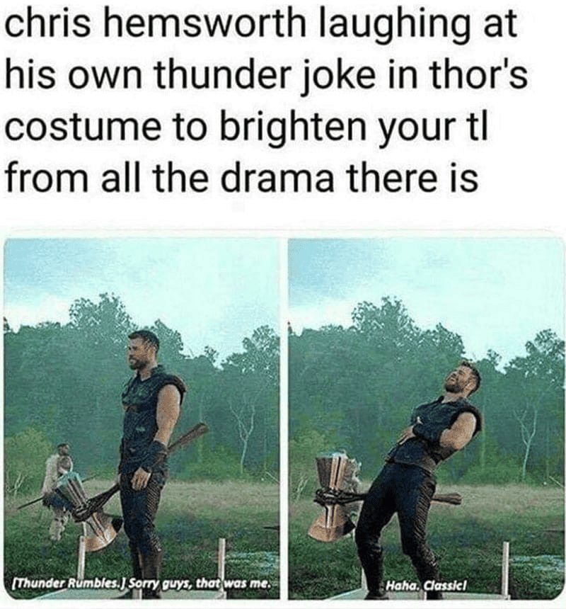 During filming, they encountered various challenges, including unpredictable weather. While shooting this scene, thunder began rumbling in the background, and Chris, in his true Thor fashion, playfully apologized for causing the commotion. If you’re looking for a Chris who delivers groan-inducing dad jokes, Hemsworth fits the bill.