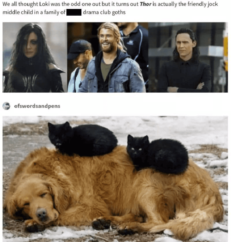 Loki is often regarded as the strange sibling, which is far from anything close to reality. Looking at Loki and his siblings side by side, you can see how well he fits. He and Hela look ready to go to a My Chemical Romance concert when they were still a thing.