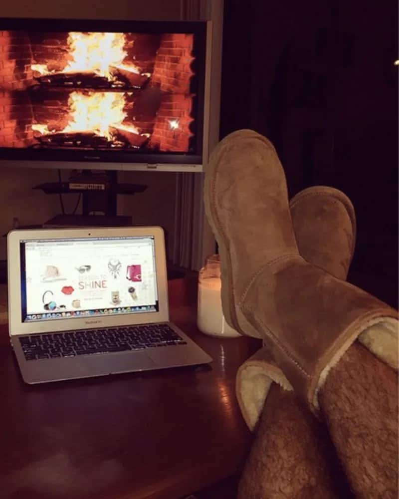 Even though it’s just a photo, the fireplace image manages to radiate a sense of warmth. The presence of UGGs, the glow of a laptop screen, and the inviting fireplace all contribute to creating this perfect snapshot that beckons you to linger a little longer.