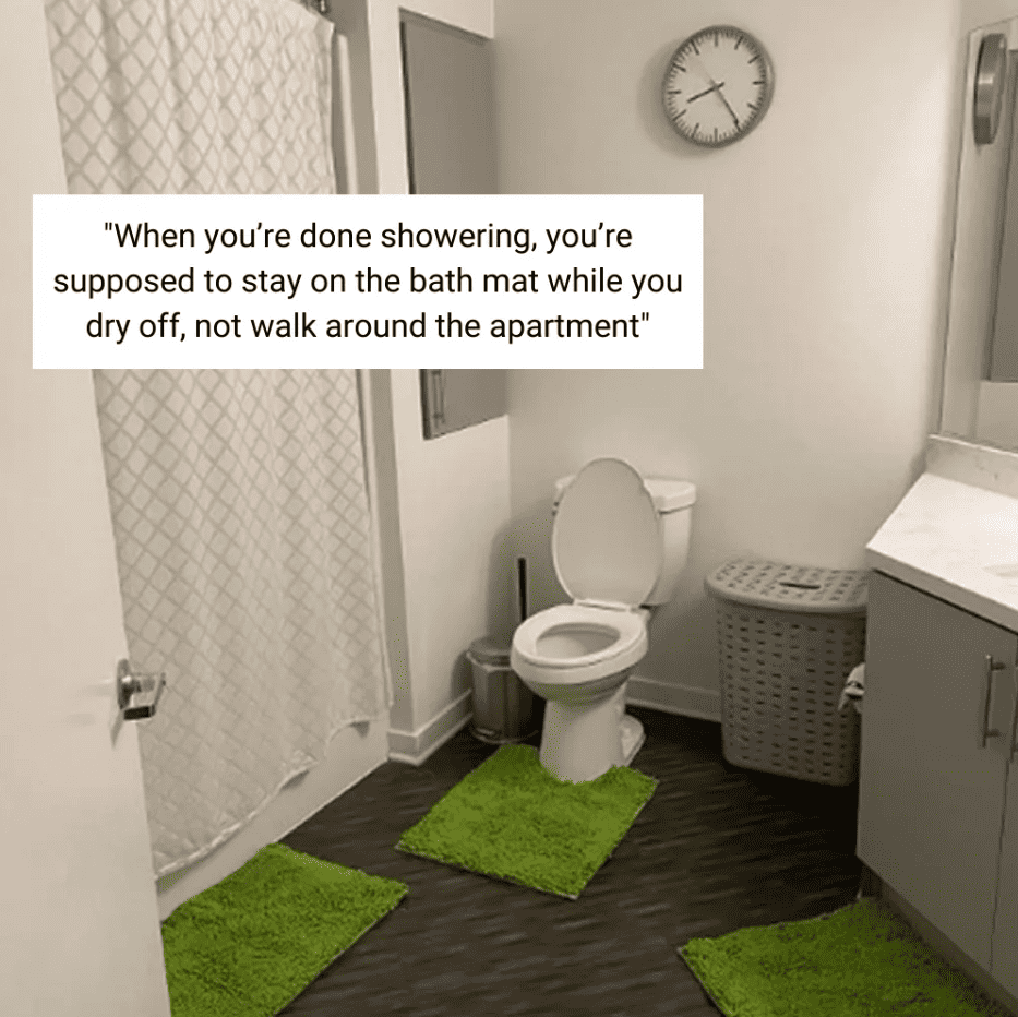 This seems like common sense, and it’s sad he needed to live with a woman to figure it out! No one, regardless of gender, enjoys random water trails all over the apartment post-shower.