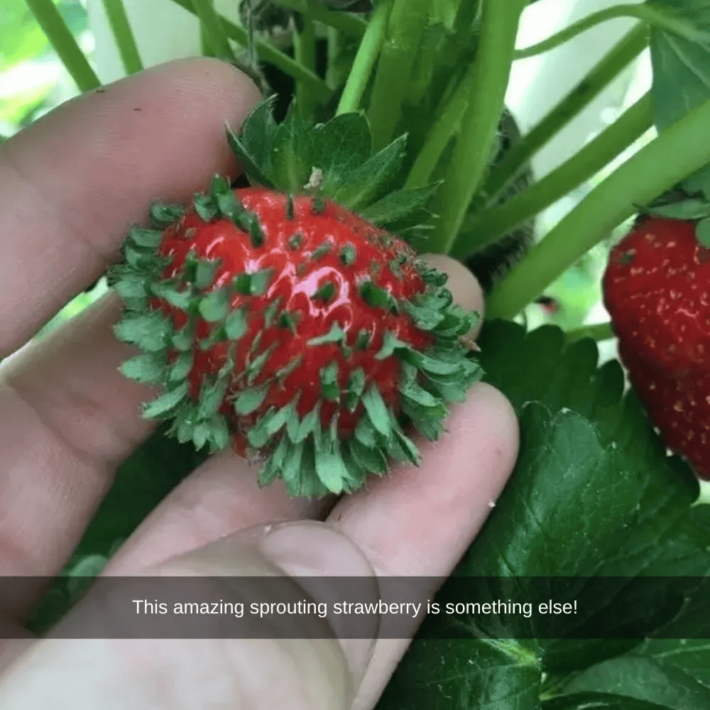 The image of this sprouting strawberry serves as a poignant reminder of nature’s unique sense of timing and its propensity for unexpected beauty. It encourages us to slow down, observe, and appreciate the wonders of the natural world, even when they unfold at their own unhurried pace. In doing so, we gain a deeper appreciation for the mysteries and marvels that abound in our surroundings.