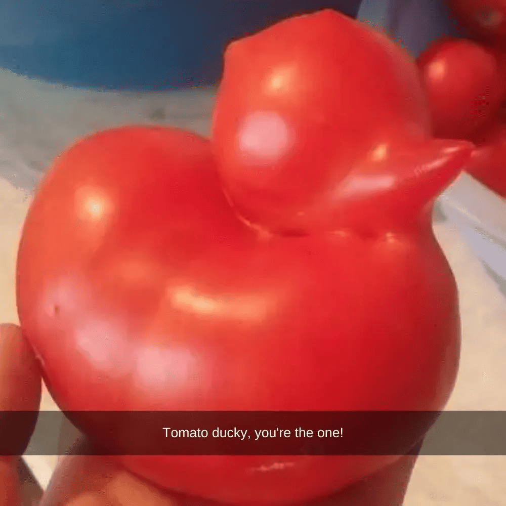 Nature’s whimsy is fully displayed when it transforms everyday objects into unexpected counterparts. In this case, a yellow tomato resembles a rubber ducky, especially when viewed from a certain angle.