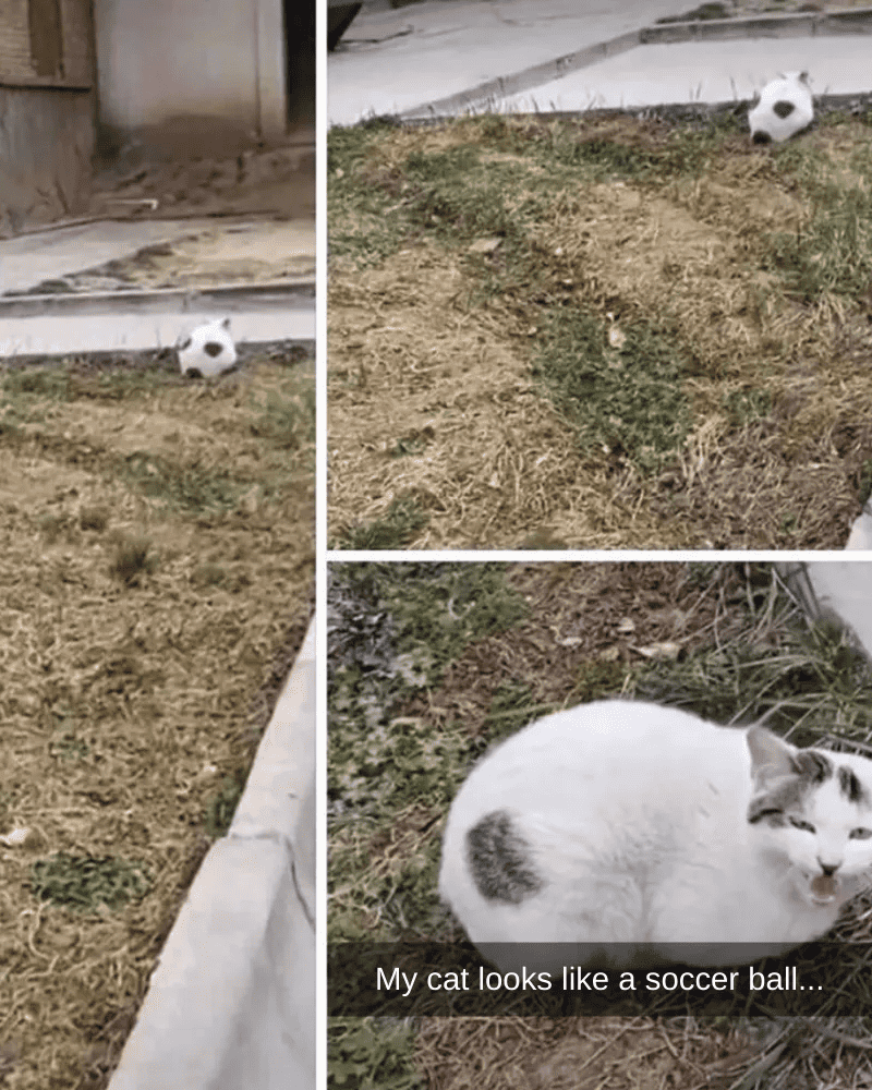 From a distance, photography can sometimes play tricks on the eyes, leading us to perceive subjects differently than they are. In this intriguing case, a little feline’s back resembles a soccer ball left outside, creating a captivating illusion.