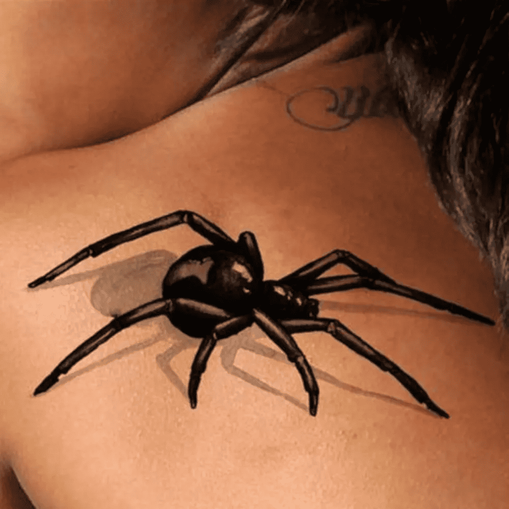 The inclusion of a shadow beneath the spider adds an extra layer of realism, enhancing the illusion that this arachnid is indeed traversing the skin. While it’s undoubtedly impressive, some distance might be preferred for full admiration.