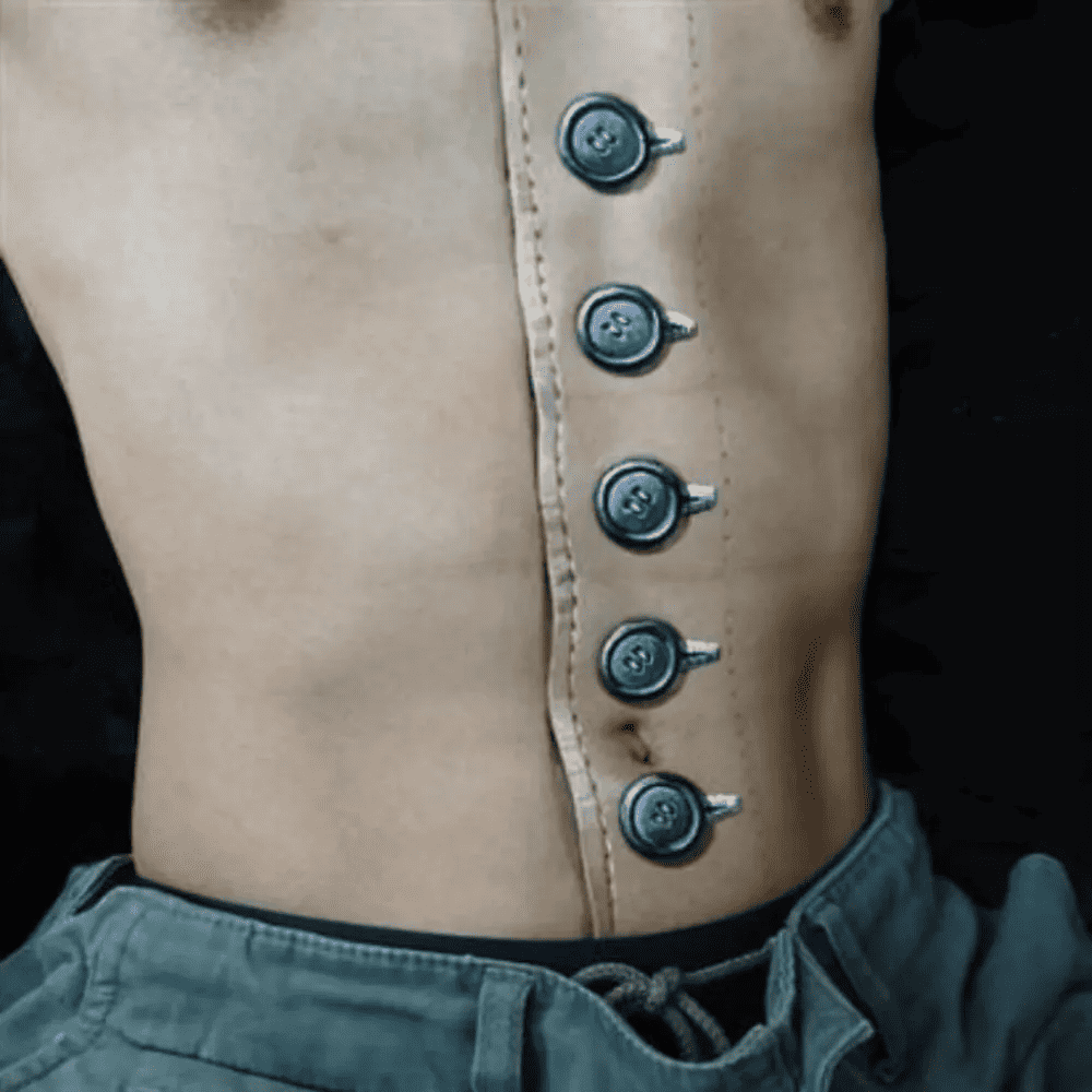 In a stroke of artistic brilliance, his skin now mimics the intricate details of a button-down shirt, complete with meticulously inked buttons. This remarkable tattoo choice exudes classiness that goes beyond the ordinary. What truly sets it apart is the meticulous attention to detail, right down to the neat tuck-in of the shirt. It’s a clever blend of humor and creativity that invites viewers to appreciate the whimsical side of tattoo artistry while also encouraging contemplation about the stories and motivations behind such intriguing choices.