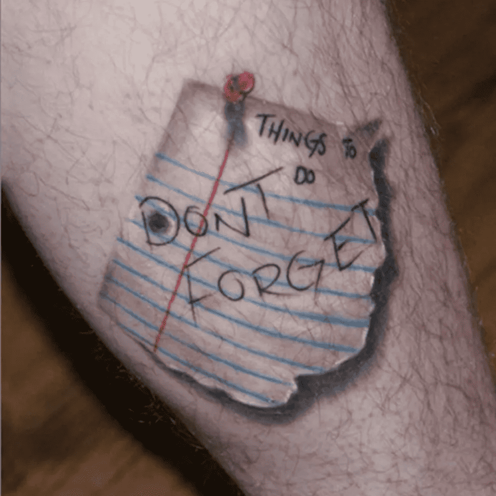 Regardless of its purpose, the hyper-realistic artwork gives the illusion that the wind might carry away the depicted piece of paper at any moment. The pin’s appearance is so convincing that it almost provokes a tactile response as if one could feel the pricking sensation on their skin. Indeed, this is a testament to the convincing nature of this body art.