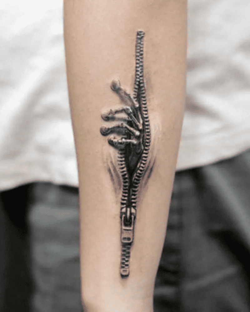 This tattoo offers a striking portrayal of a creature seemingly trapped beneath the wearer’s skin, desperately clawing its way out into the world. The interpretation of this imagery remains open-ended – it could symbolize the wearer’s inner struggles or simply reflect a captivating design that appealed to them as a tattoo.