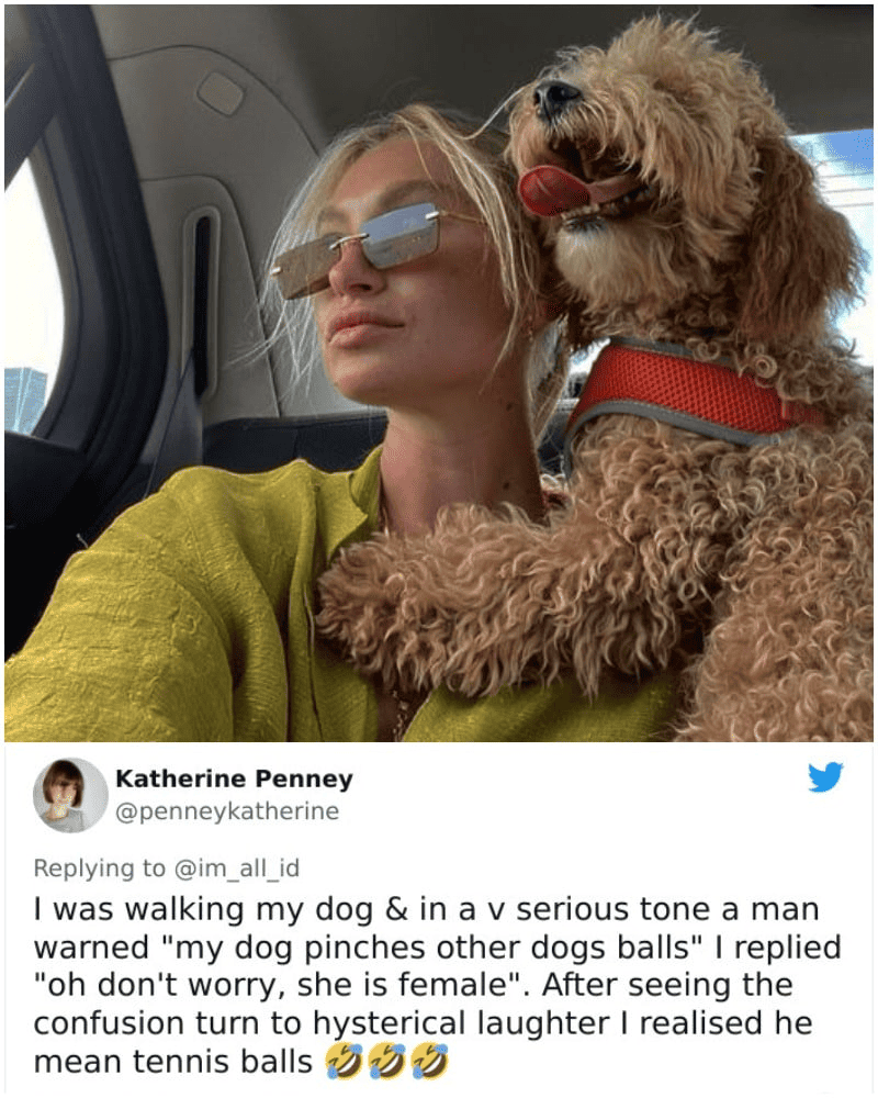 It’s also amusing that the guy even thought to give her a warning. I always assumed that tennis balls were fair game in this dog-eat-dog world. Whoever is the quickest claims the toy. Isn’t that how it works? I wouldn’t be upset with someone’s dog if they grabbed our tennis balls at the park.