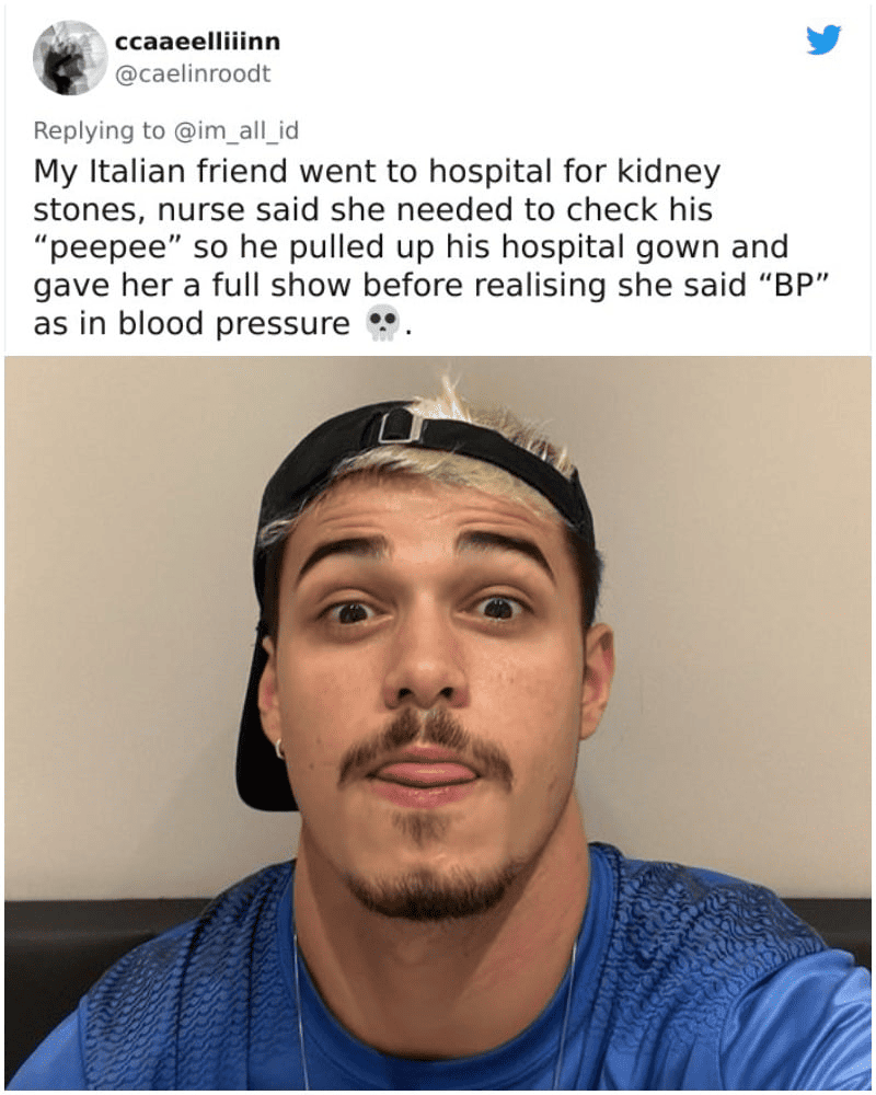 I can understand where he was coming from, though. Kidney stones are associated with the lower region and can be excruciatingly painful. Understandably, he might have been eager to complete the examination and receive the necessary assistance. Hopefully, someone clarified that healthcare professionals use clinical and scientific terminology when discussing anatomy, not terms like “peepee.”