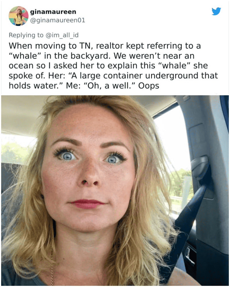 Hopefully, Gina brushed up on her Southern before moving to Tennessee because it’s like an entire language with many nuances. I’ve recently learned that Southerners are also more likely to smile, nod, make eye contact, and engage in small talk with strangers, which doesn’t happen up North or West.