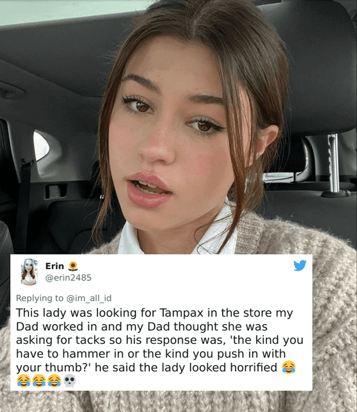 Props to the dad for sharing this story with his daughter. I bet he was even more embarrassed than the woman who asked him. Additionally, he might have worked in a hardware store, and in that case, it’s on her to expect to find Tampax on one of the store’s shelves.