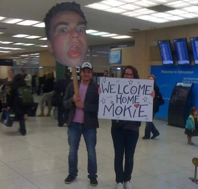 If his friends meant to embarrass him, they succeeded with this blown-up photo. Hopefully, Mokie saw it from a distance and avoided the reception area. No one wants to see a giant silly picture of themselves in public, but his friends probably just wanted to share a good laugh.