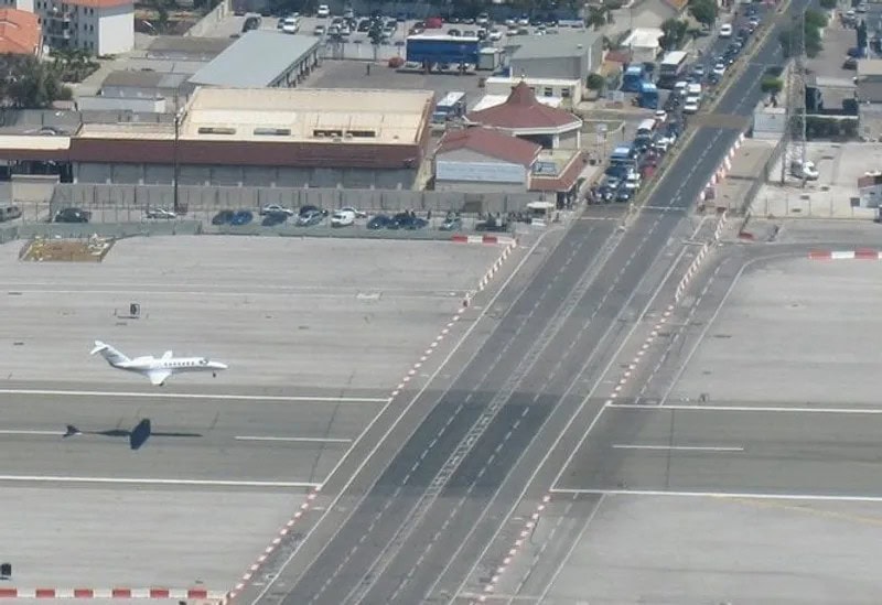 This picture resembles a scene from Transport Tycoon. It’s an international airport in Gibraltar where cars wait for a green light to cross the runway. But what if there’s a power outage? It’s unsafe and needs improvement.