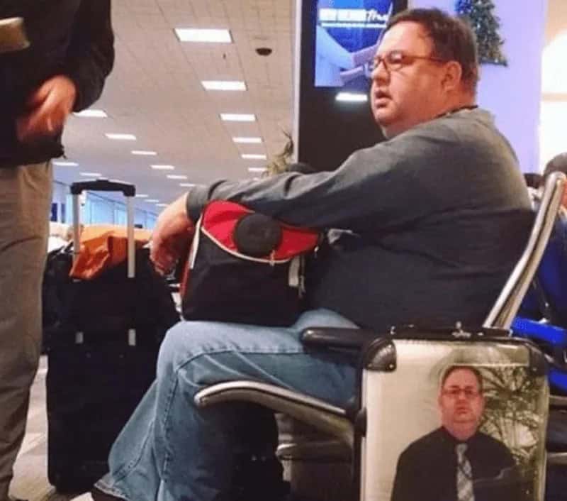 If this is what it takes to avoid losing luggage repeatedly, then let it be. This guy probably lost his luggage too many times and decided to put his photo on it. How many times must it happen before taking such a drastic step? Hopefully, it is not always his fault.