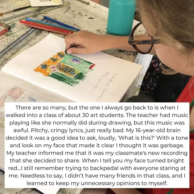 Reddit user once let their honest opinion slip without realizing how personal it would feel to someone else. They voiced dislike for a particular song, only to find out it was written by their classmate. Cue the intense awkwardness.
