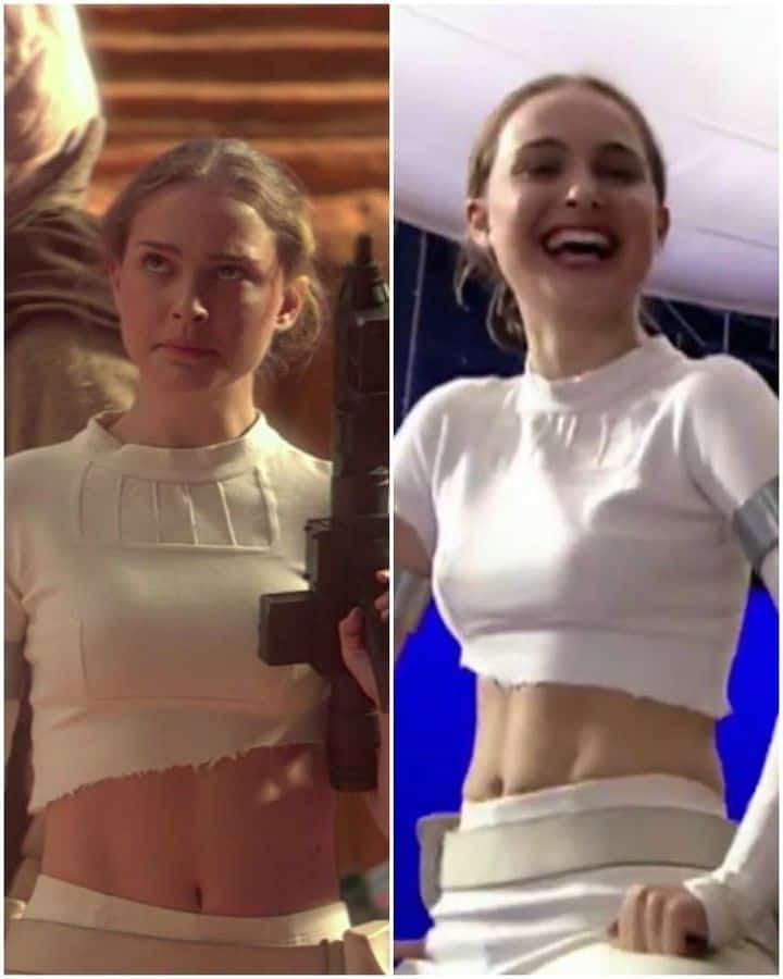 An alien attack heightened the allure of the costume, resulting in the fabric tearing and transforming it into a crop top, accentuating Portman’s toned stomach. This unexpected alteration added a dynamic element to the outfit, further solidifying its place as one of the most memorable costumes in the Star Wars saga.