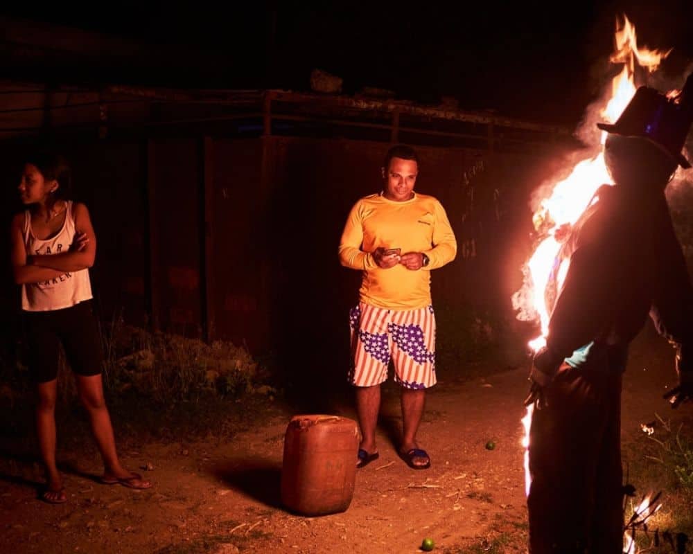 Una muñeca de trapo de tamaño natural se incendia en ciertas regiones, principalmente en áreas rurales. Esta efigie representa los acontecimientos desagradables del año anterior. La gente se reúne alrededor de la estatuilla a medianoche, encendiéndola como una marioneta, con la esperanza de atraer la buena suerte para el próximo año.