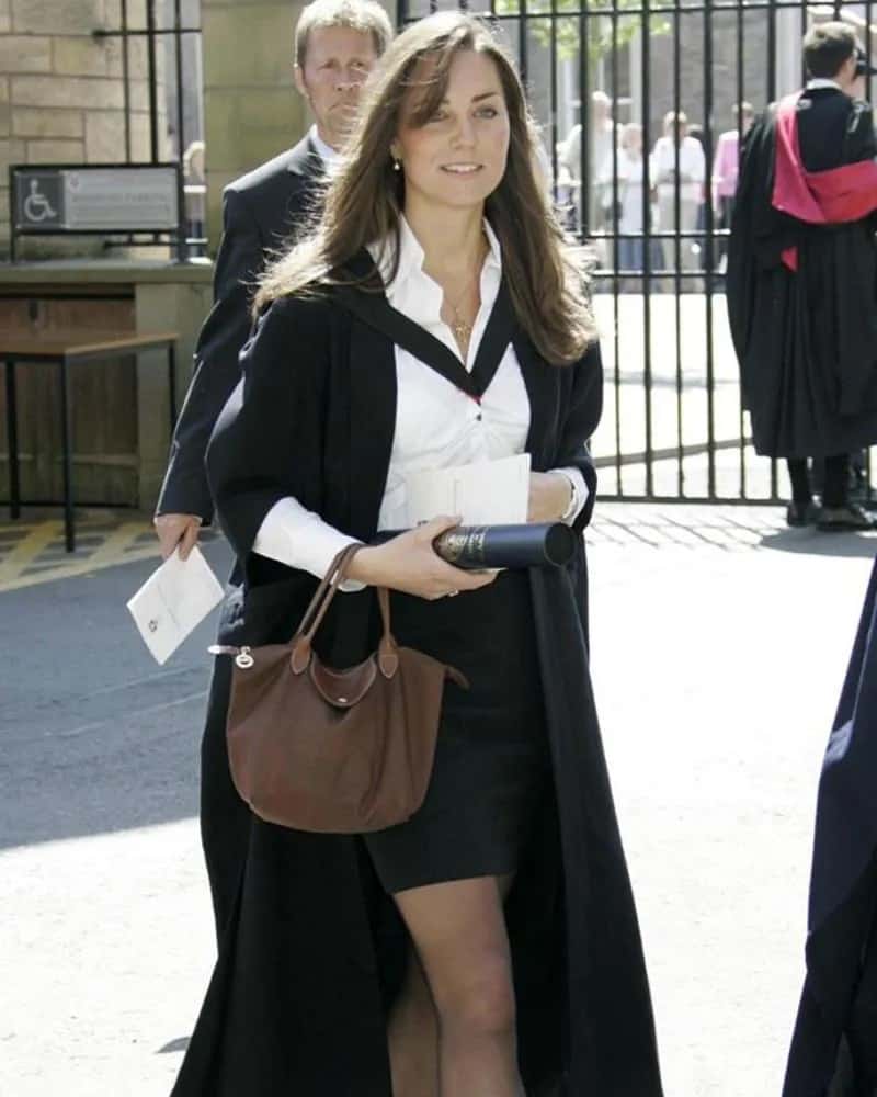 As you may have surmised, this photograph was taken at Kate’s graduation from the University of St. Andrews in Scotland, where she first encountered William. Nearly two decades have elapsed since this picture was taken, and it appears that Kate has scarcely aged a day since then!