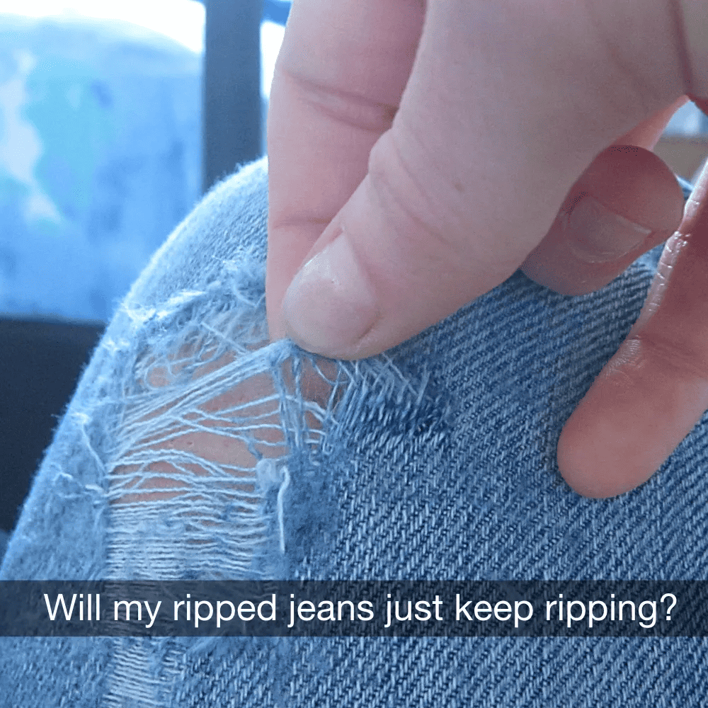 While some ripped jeans are designed to prevent further tearing, others resemble a never-ending unraveling thread. One moment, you look great in your jeans, and the next, you feel exposed because your skin is peeking through!