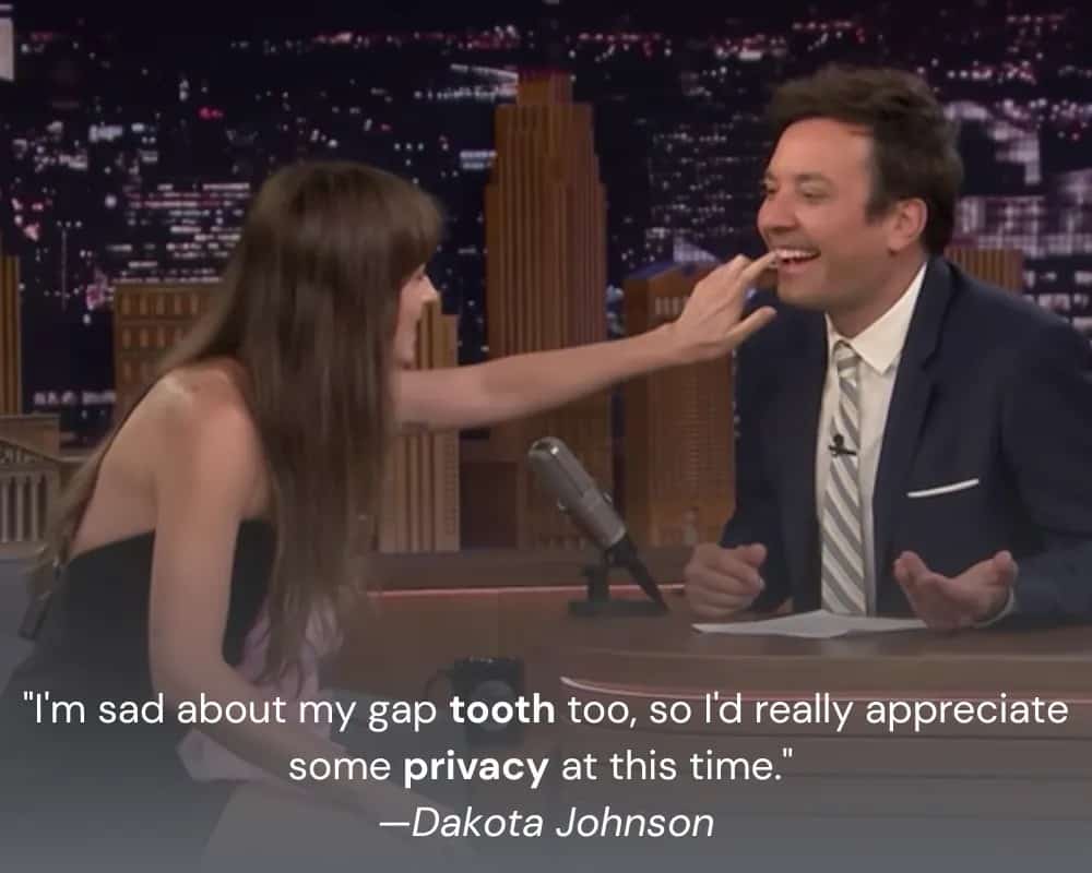 Celebrity interviews can sometimes take unexpected and quirky turns. In a peculiar moment, Dakota Johnson’s interview with Jimmy Fallon took an unusual twist as she had recently visited the orthodontist and had her retainer removed, which resulted in the natural closure of her famous tooth gap. Jimmy, in response, shared his dental anecdote, revealing that he had a fake tooth. Curiosity got the better of them, and they began tapping each other’s teeth to see if they felt real. It was an unexpected turn of events, demonstrating how conversations during celebrity interviews can take surprising detours, even into dental discussions.