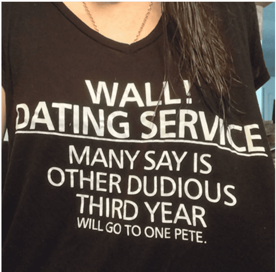 It seems that this woman is advertising her dating services, and we respect her hustle! Hey, times are tough, and we’ve all got to make money, so good on her for using a walk down the street as a marketing opportunity.