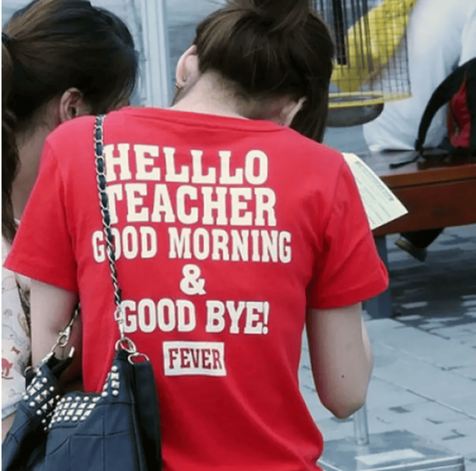 This girl must want to skip school! Have you ever wanted to get out of a class so badly that you printed the excuse for not attending directly onto your shirt?