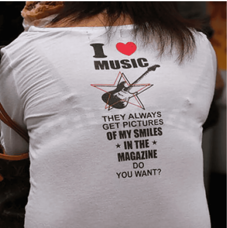One can only assume that the wearer of this shirt is offering to take pictures with passersby. We hope this isn’t like those in major tourist areas (think Times Square) who run scams.