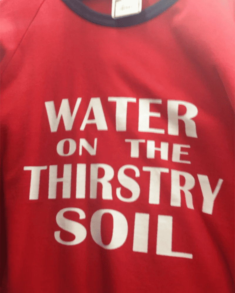 By “thirsty soil,” one can assume it means a person overly eager for intimacy. And if you “water” that soil, that means you’re helping them out. The next time someone sends you a thirst trap, and you’re into it, just reply with a picture of this shirt.
