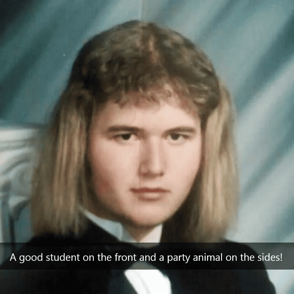 However, upon closer inspection, a stark transformation becomes apparent. The sides of this student’s personality unveil a striking “party animal” aesthetic emblematic of the eccentricity and uninhibited fashion choices of the ’80s. Indeed, this era was a peculiar time, particularly when considering hairstyles like the one proudly displayed in this yearbook photograph. The mere fact that such a hairstyle was commonplace during that period speaks volumes about the unique fashion sensibilities of the time.