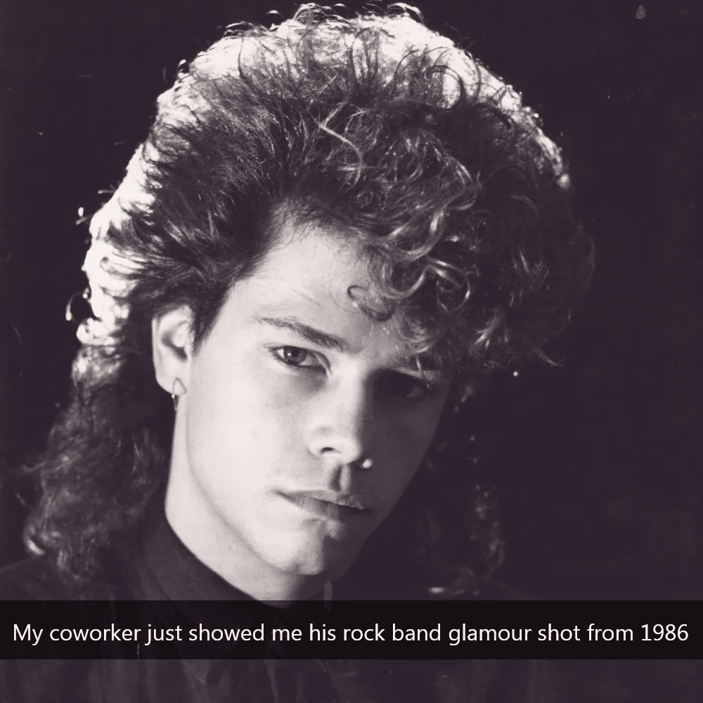 Glamour shots were all the rage in the illustrious world of ’80s rock ‘n’ roll. This particular shot reignites our love for the concept of photoshoots. There’s something undeniably captivating about that quirky hairstyle juxtaposed with an intensely serious expression. It’s an image that manages to bring a smile to our faces.