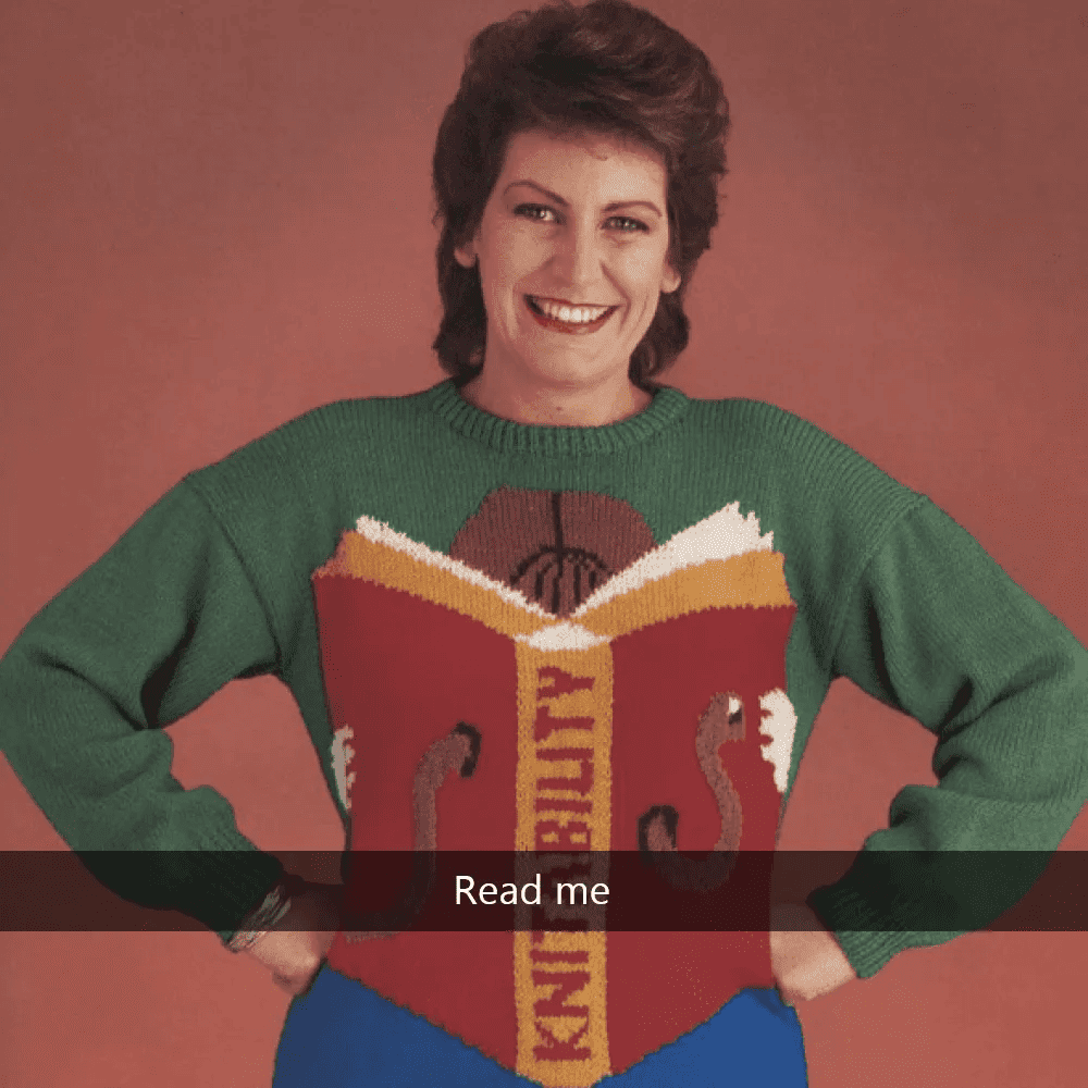 You might find those Christmas-themed family sweaters amusing, but if you do, you haven’t yet experienced the sweaters people used to wear in the ’80s. Massive book-print designs knitted onto boldly colored sweaters were all the rage during that era.