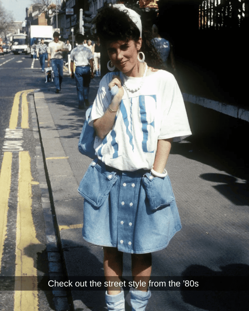This woman’s street style perfectly encapsulates the era in which it was captured—over-the-top, slightly unflattering, and, in some ways, awkward to behold. However, if we deconstruct her ensemble and mentally separate its components, we might find some redeeming qualities.