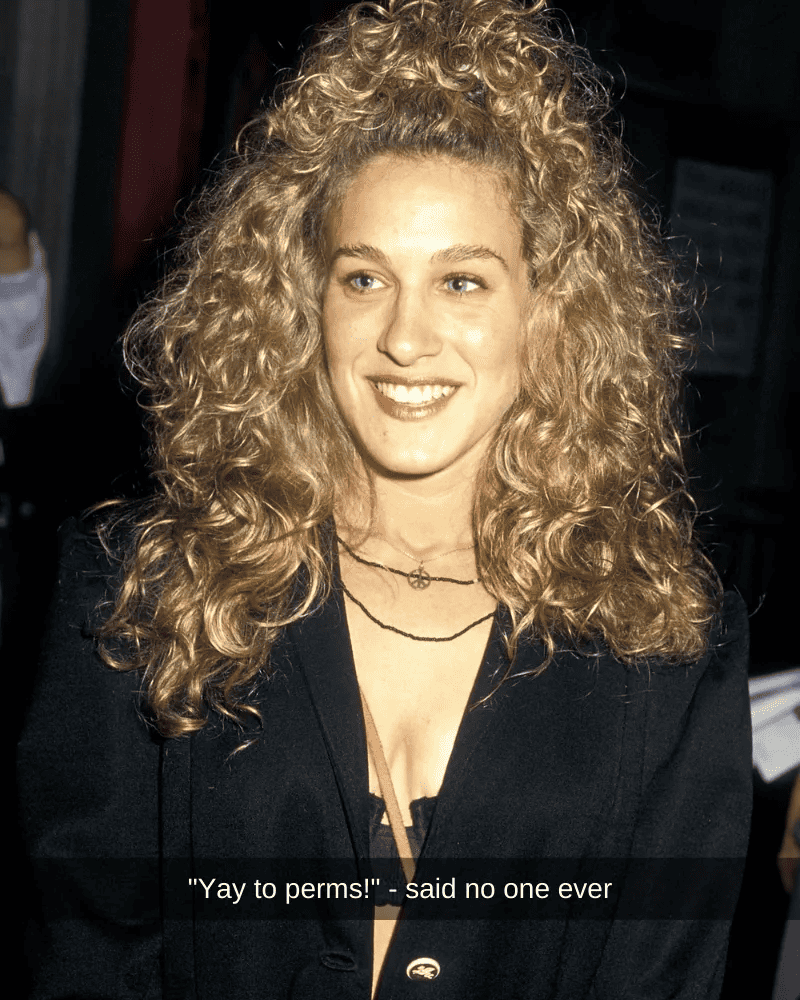 Even another gorgeous and familiar face wasn’t spared from the ’80s era of questionable hairstyles. Here, we see actress Sarah Jessica Parker donning a prominently raised perm. While we have a soft spot for SJP and surprisingly appreciate her fashion sense here, this hairdo is hard on the eyes.