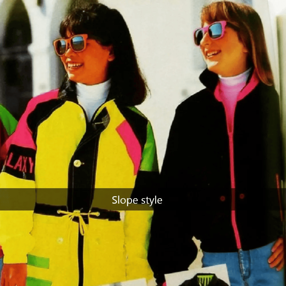 Apart from the oversized sweaters they often sported, the winter outfits, heavily influenced by the slope enthusiasts of the era, came in an array of vibrant colors. If someone were to embark on a skiing adventure dressed in an outfit akin to these girls, they wouldn’t have to fret about blending into the snowscape. So, from a safety perspective, we can certainly appreciate including those neon colors!