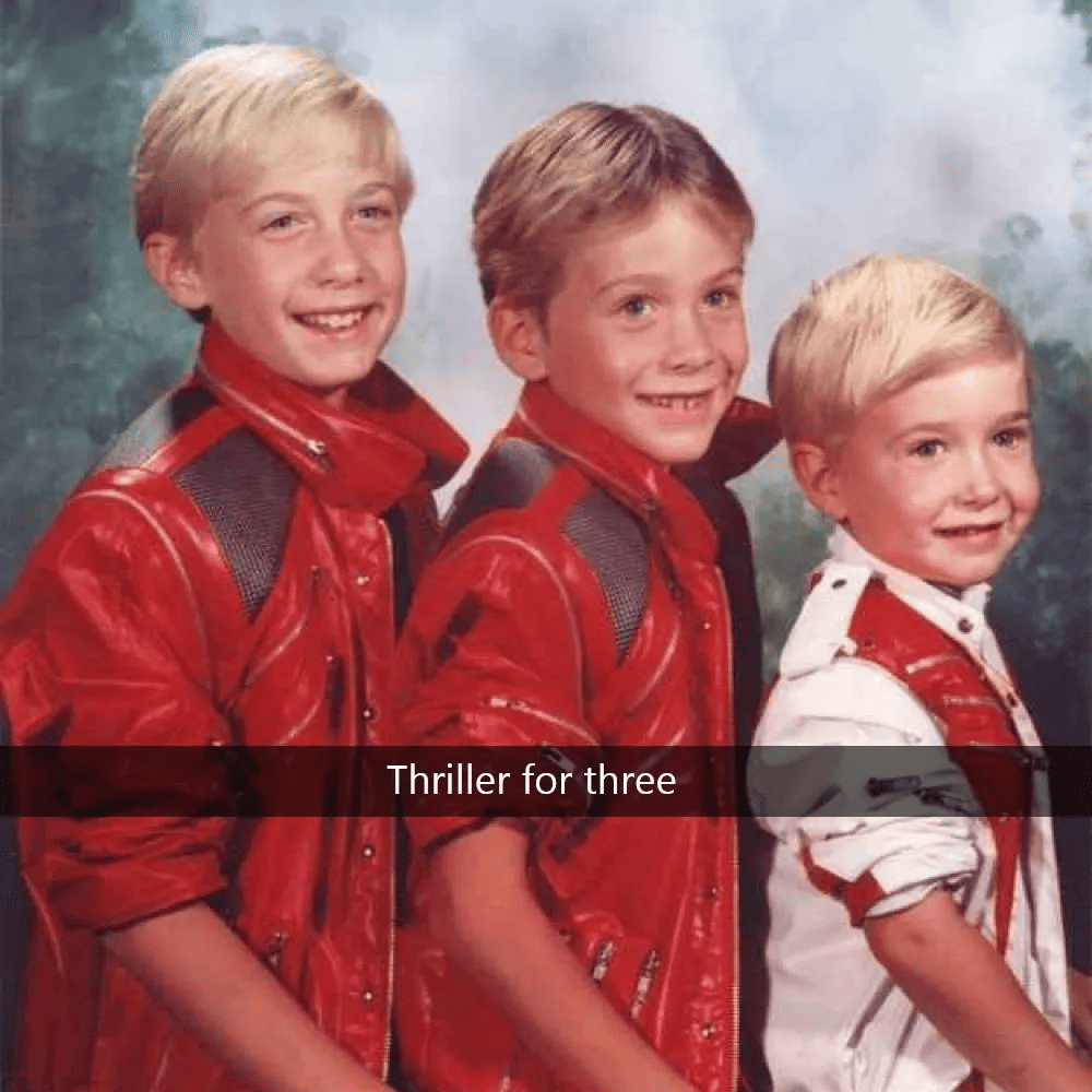 In this delightful snapshot, three young brothers appear overjoyed with their Michael Jackson-inspired attire. It’s hardly surprising that this style was widely embraced during the ’80s. Even if this fashion trend were to come back, one can only assume that Michael Jackson fans would be more than willing to embrace it with open arms.