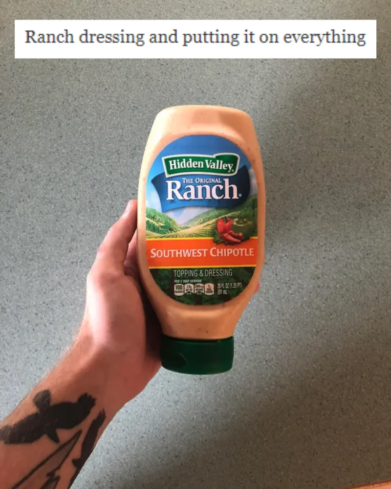 For the other option, you’ll have to skip over closer to the salad dressing. Once you’re there, you can grab some ranch dressing and put it on just about anything. From pizza to vegetables, you’ll probably see someone try it with ranch.