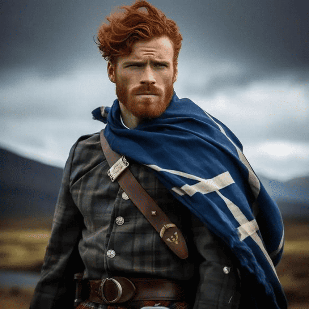 Sporting striking red hair, Scottish men are famous for their bagpipe melodies, believed to summon the Loch Ness Monster from her hidden abode. In this portrayal, we celebrate the enduring spirit of Scotland, from its historic battles to its legendary culinary delights, all while embracing the legendary allure of its Highlanders.