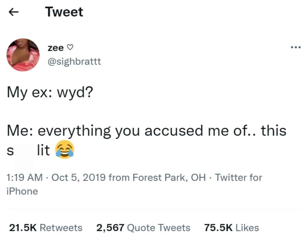 So, when their ex dared to reach out and inquire about their activities, they took the opportunity to remind them of all the things they probably didn’t want to hear. Well, at least they got to try out everything their ex once accused them of.