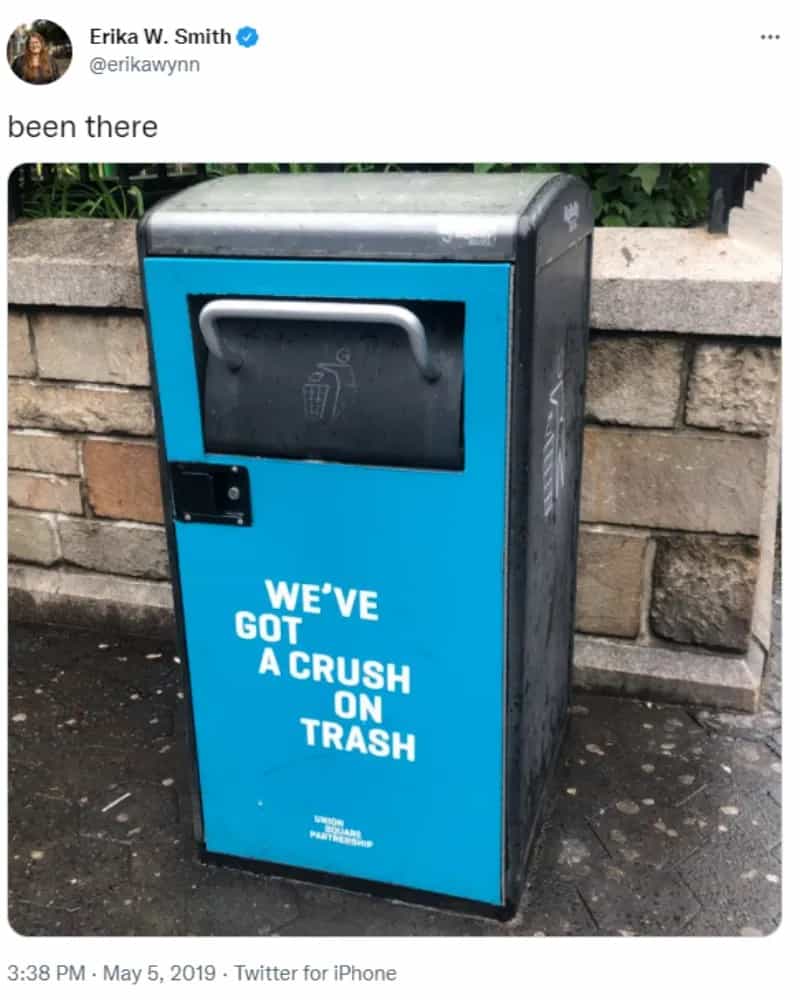 In the context of developing romantic feelings, the tweet suggests that sometimes, what initially seems like a deep crush might appear differently in the rearview mirror of time. The simplicity of the image, featuring a trash can with a fitting saying, manages to capture people’s attention while encapsulating this shared human experience of evolving feelings and insights.