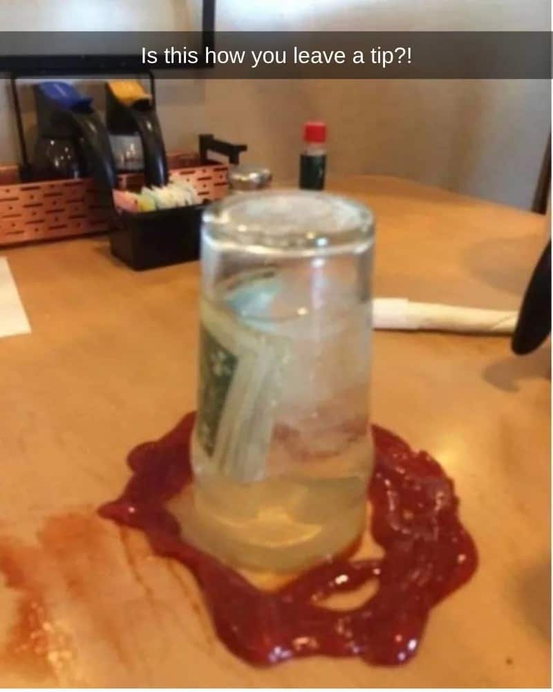 In many cultures, leaving a tip for your waiter at a restaurant is considered a polite and customary practice to show appreciation for their service. The staff works diligently to ensure a pleasant dining experience, making it even more surprising when someone chooses to leave a tip in an incredibly trashy and disrespectful manner. This photograph reveals one such instance where the tip left behind was not only inadequate but also left in a way that could be considered offensive.