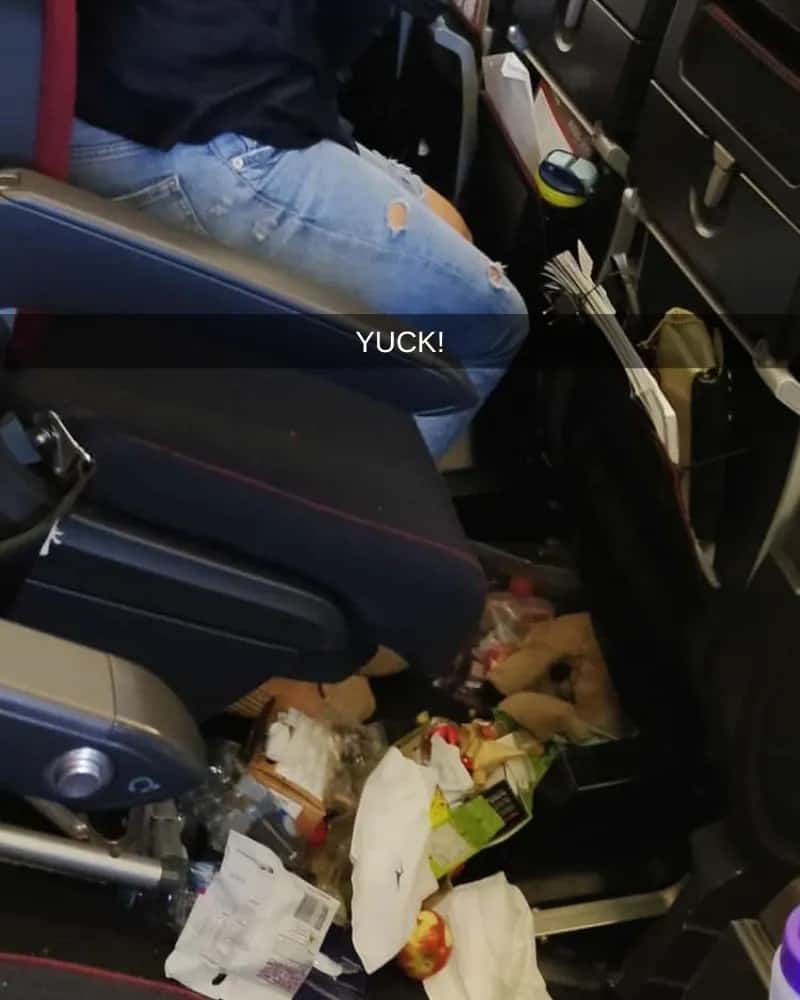 Long flights can be challenging due to extended periods spent in a confined space. However, it is essential to maintain cleanliness and organization within the aircraft, treating it with respect and consideration. Disposing of trash appropriately should be a simple task, especially with flight attendants regularly passing by with trash bags.