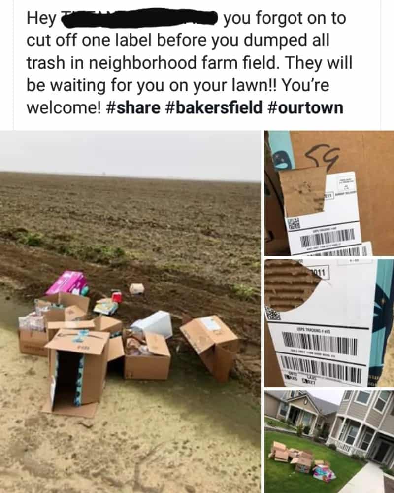 As we’ve said, littering really is a trashy move. It’s especially rude to go out of your way to litter on a stranger’s property. The person who left this litter might have wanted to double-check their trash, though. Since it was mostly shipping packages, it was easy for the owner of the farm to find their name and address and send all of the trash they left straight back to their own home.