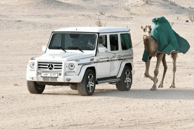 Dans le Dubaï d’aujourd’hui, la tendance dominante est d’acquérir les voitures les plus extravagantes et les plus accrocheuses, plutôt que de parcourir les rues avec une meute de chameaux. Cependant, dans une fusion unique de l’ancien et du nouveau, un individu a choisi d’entrelacer le meilleur des deux mondes. En optant pour une luxueuse Mercedes Jeep comme moyen de transport, cette personne s’est non seulement livrée à l’incarnation de l’élégance automobile, mais a également montré son investissement dans ces animaux majestueux. C’est un témoignage remarquable du mélange harmonieux de tradition et de modernité que l’on trouve dans la ville captivante de Dubaï.