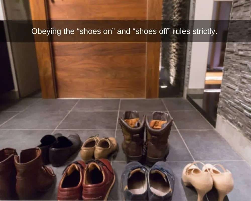Additionally, traditional Japanese flooring, known as tatami mats, is sensitive and easily damaged. Hence, removing shoes is not only a sign of respect but also a practical measure to protect these delicate surfaces. Japanese people often dine and sleep on the floor, with futons placed directly on tatami mats. Therefore, the practice of taking off one’s shoes is a natural extension of the cultural value placed on cleanliness and maintaining the integrity of living spaces.