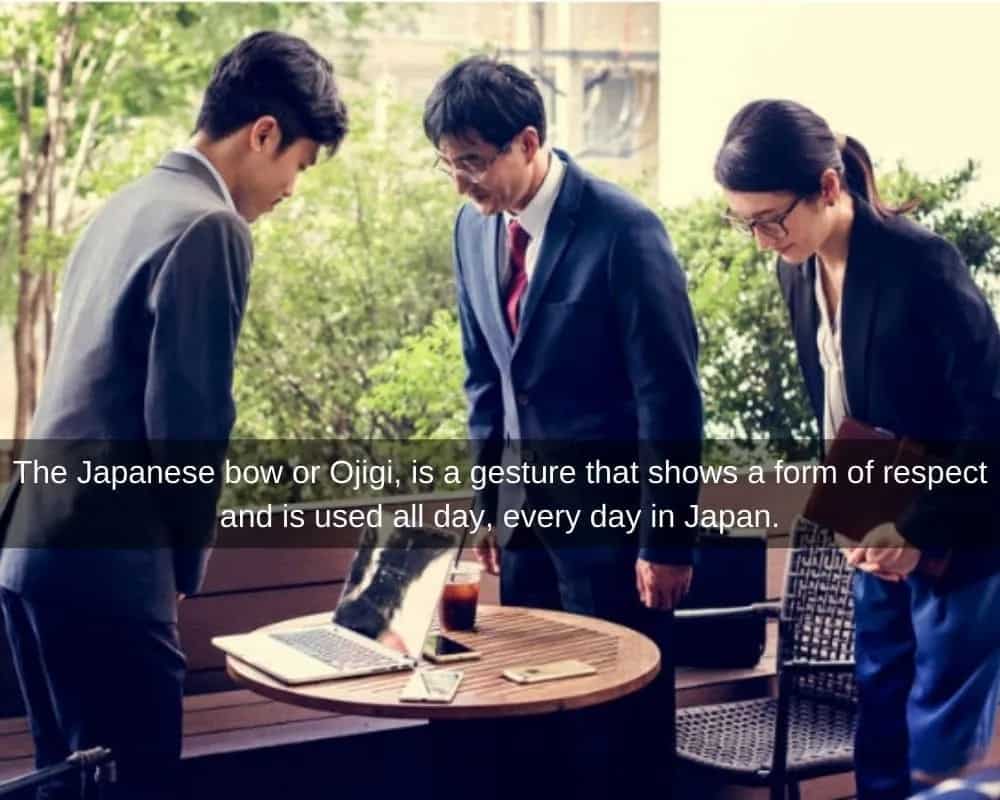 The Japanese bow, also known as Ojigi, is a respectful gesture used all day, every day in Japan. Bowing is a significant and profound gesture in Japanese culture, signifying humbling yourself and thanking the other person.