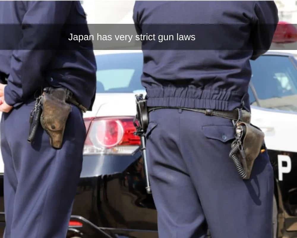Although Japan has strong gun laws, a low crime rate, and few guns in the general population, nearly every police officer on the street must carry a pistol as part of their regular police uniform.